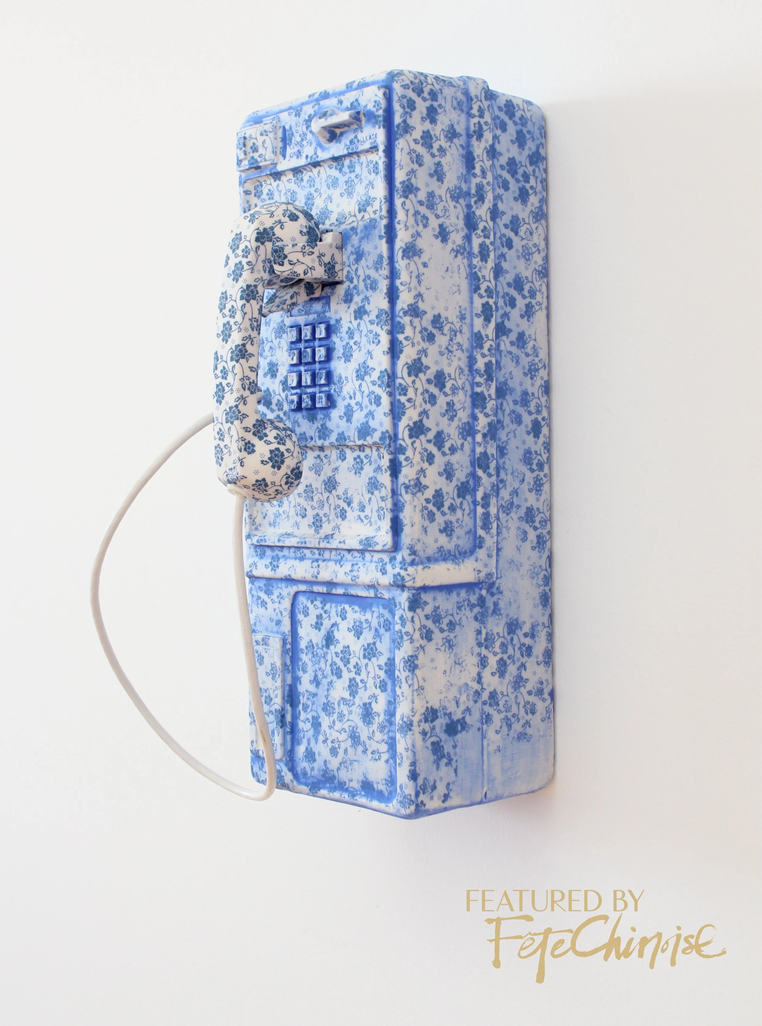Once widely used and now nearly extinct the payphone is a symbol of our past connectivity and technology. Cast in porcelain and embellished with patterns of cobalt blue this relic is celebrated and references the rich history of porcelain objects.
