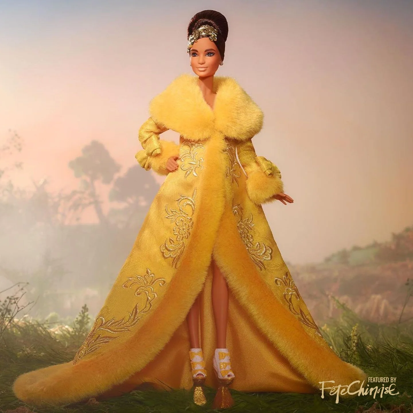 Renowned Chinese couturier Guo Pei combines her rich cultural heritage with contemporary innovation to create two couture pieces for Barbie. "Barbie X Guo Pei Sapphire Blue Brocade Lunar New Year Style" is draped in classic Chinese royal blue. This stunning doll features sumptuous dragon embroidery, balancing artistic heritage with contemporary innovation through Guo Pei’s signature craftsmanship. Golden earrings, a sparkly statement ring, and gold coloured pumps complement the custom creation. In another design, Barbie in a golden-yellow gown was inspired by Guo Pei's original design for Rihanna's dress for the Met Gala in colours once reserved solely for Chinese nobility. The stunning brocade gown features ornate embroidered details and a faux fur trim. A striking golden headpiece, golden accessories, and high-fashion shoes complete her look.