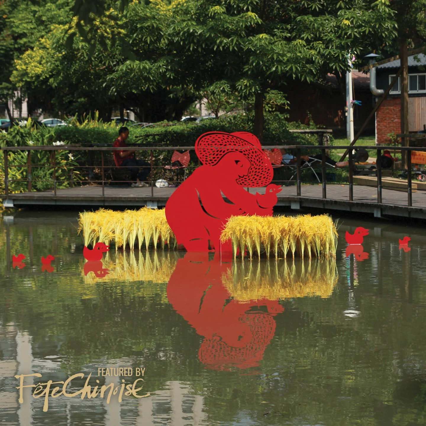 In one striking example, Yang reimagines the traditional Chinese folktale surrounding the Chinese New Year's Nian beast. Traditionally, this fearsome creature wreaks havoc, causing destruction and suffering among the people. To ward off the Nian beast, people traditionally set off firecrackers and display red decorative strips with auspicious messages. However, in Yang's 2015 paper-cutting masterpiece, he presents a remarkable reinterpretation: he transforms the once menacing Nian beast into a charming and endearing round-shaped figure. This new portrayal aims to communicate a message of familial unity and reunion as the New Year approaches.