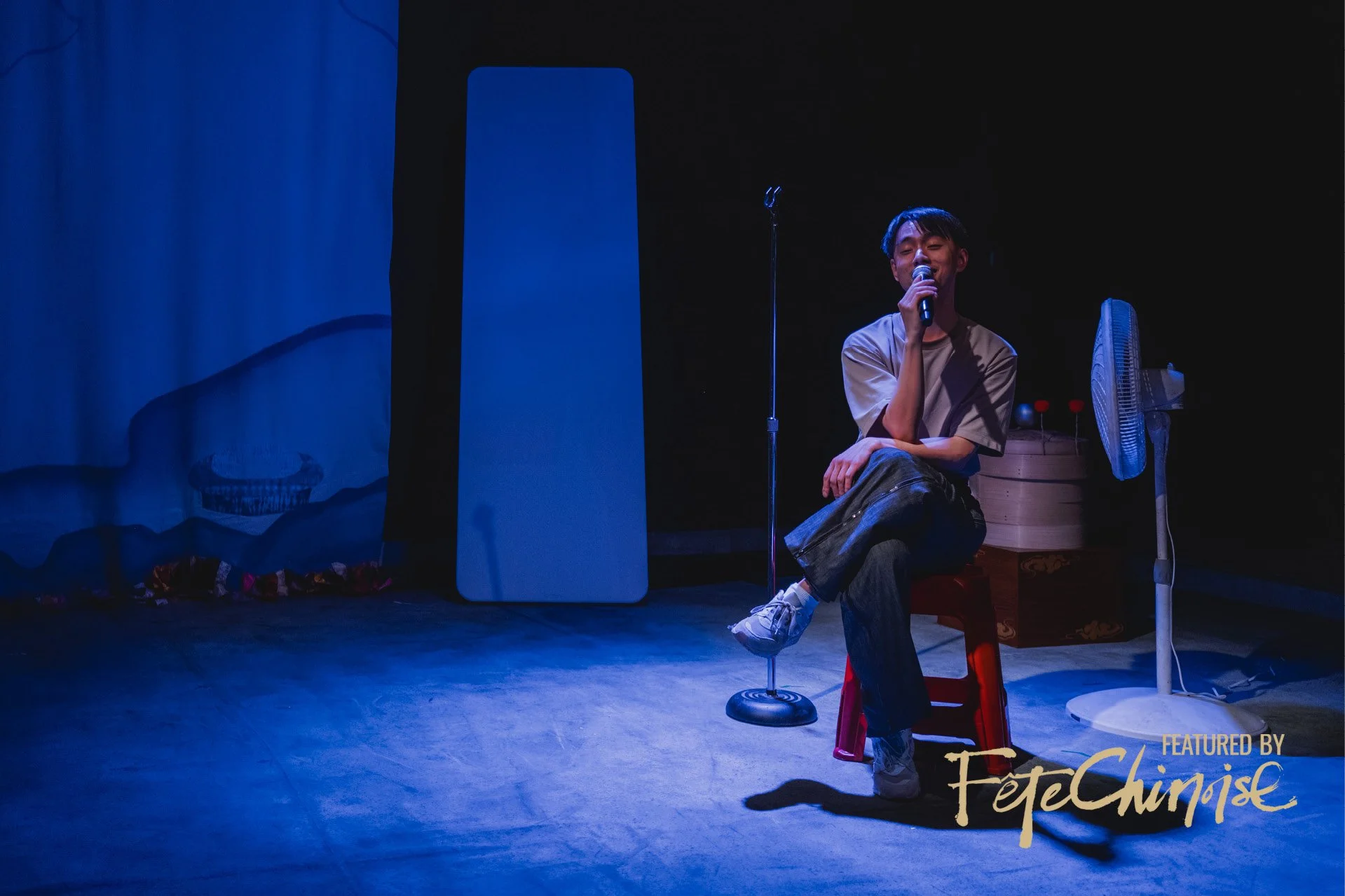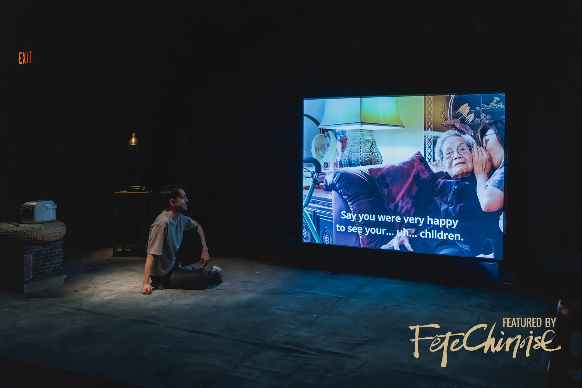 As a multimedia artist, Kevin Matthew Wong makes expert use of the black box theatre’s intimacy and flexibility. His incorporation of projection, video, and recorded soundscapes not only constructs vivid settings but also layers the show with emotional nuance. One particularly memorable moment features a home video of Wong in conversation with his centenarian grandmother. The footage is raw, tender, and unfiltered — a quiet yet powerful portrait of intergenerational distance. The two can barely hold a proper conversation, limited by differences in language, experience, and age. And yet, the bond between them is unmistakable, their affection flowing in ways that transcend words.