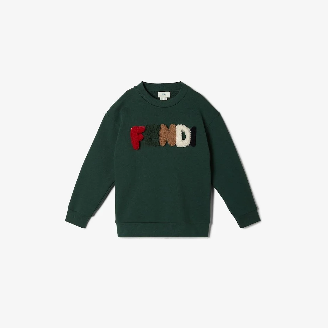 FENDI | Junior Sweatshirt, Forest Green Cotton and Shearling Junior Sweatshirt