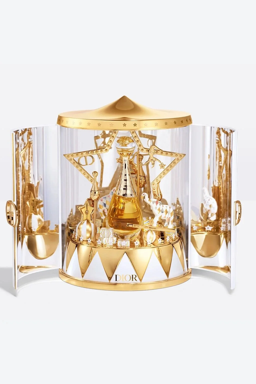 Celebrate the holidays with this limited-edition music box featuring L’Or de J’adore. Opening the circus-themed display reveals acrobats, animals, and a lively melody, creating a whimsical miniature scene. Includes a 50 ml refillable bottle of J’adore L’Or essence de parfum, a floral and sensual blend of orange blossom, jasmine, and rose absolutes, where perfumery and imagination come together in a captivating gift.
