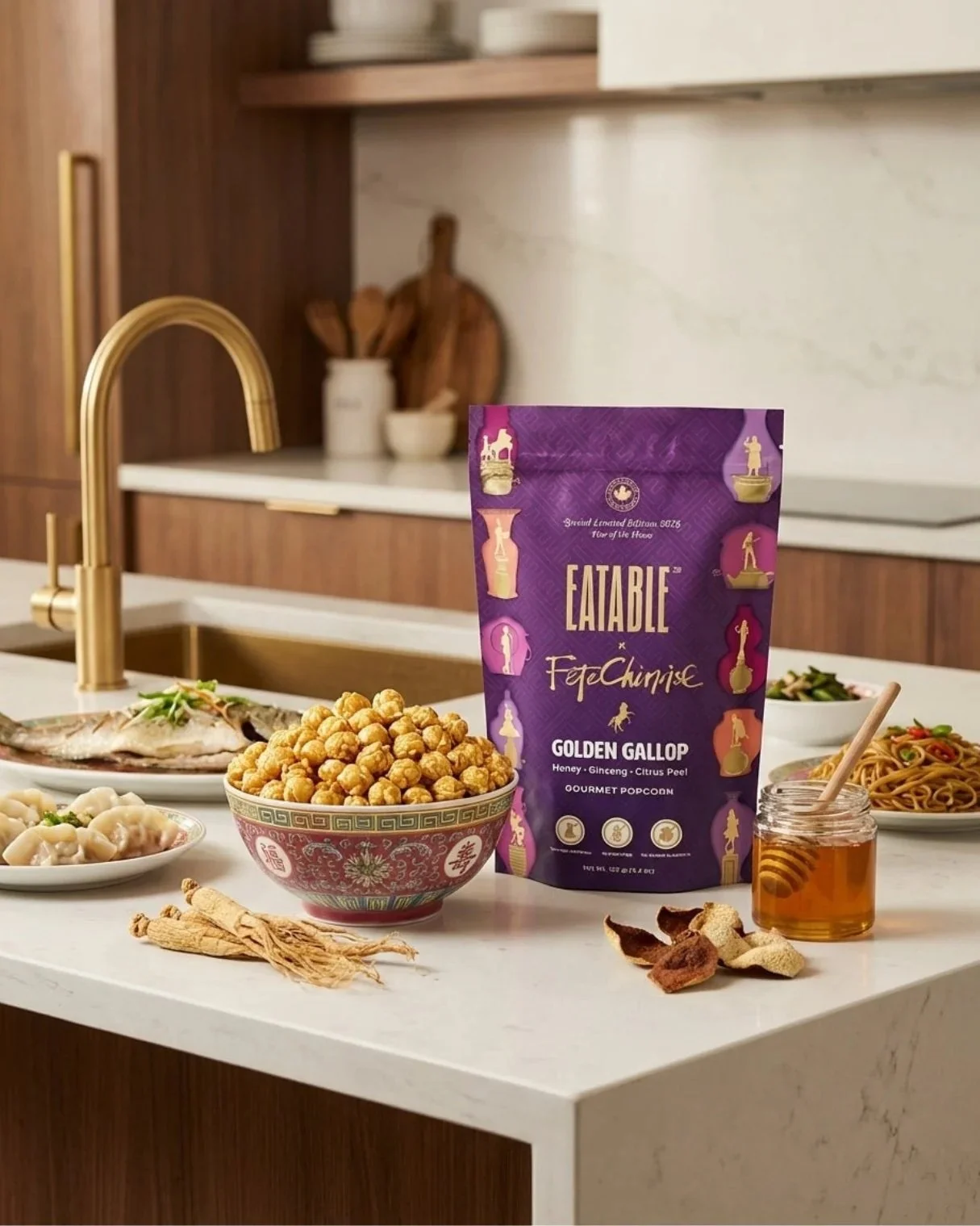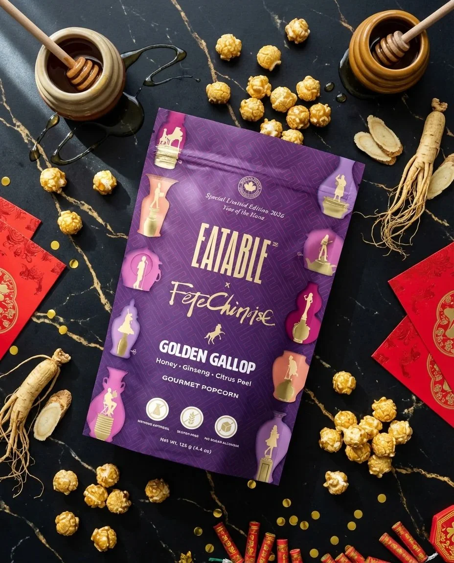 You may have noticed a special treat in your gift bag from the 2026 Fête Chinoise Signature Event: the “Golden Gallop”! This artisanal gourmet popcorn is a delightful collaboration with EATABLE, crafted to bring a taste of celebration to every bite.