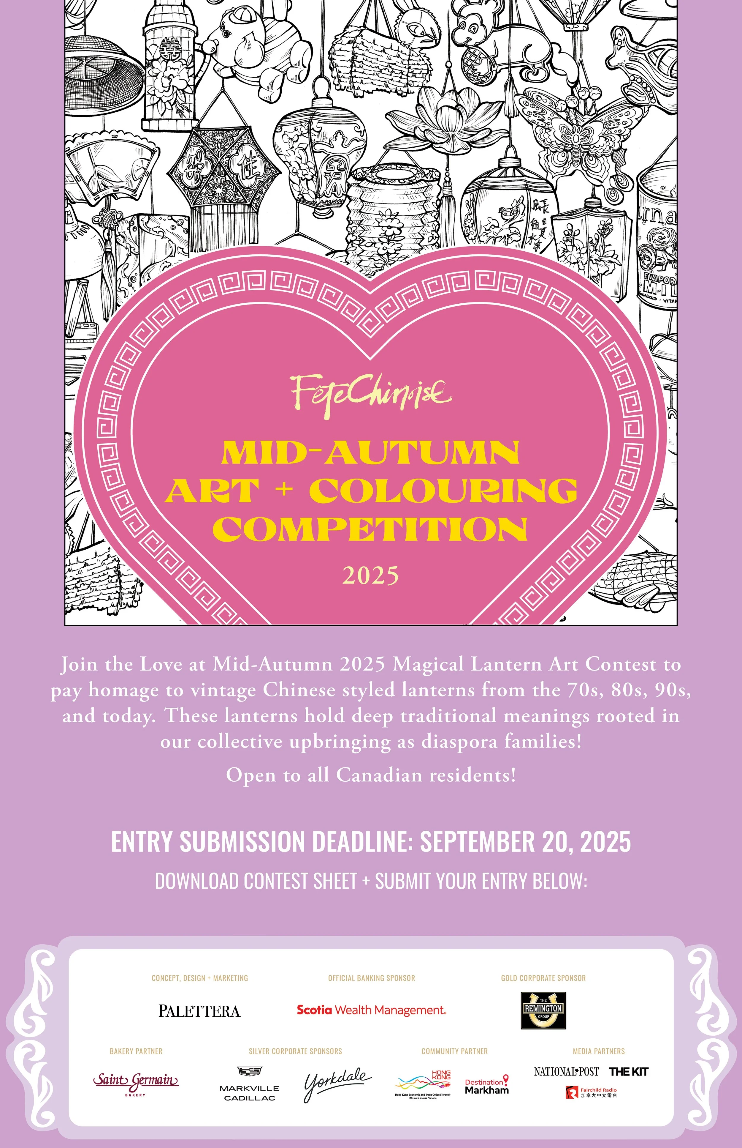 Winners will be announced on September 25, 2025. Each category will have 3 winners (1st prize, 2nd prize, and 3rd prize). Winners will be exhibited at the Community Event in Markham, and receive a gift package from Fête Chinoise and partnering brands with a retail value of $100-$500.Important Notes